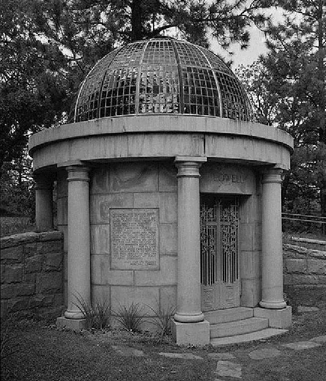 Мавзолей Ловелла на территории личной обсерватории. Последние десять лет жизни Ловелл посвятил поискам девятой планеты солнечной системы, которую называл «планета Х». По странному стечению обстоятельств планету открыли после его смерти как раз в его обсерватории, причём место нахождения планеты совпадало с расчётами Ловелла, сделанными им несколькими десятилетиями ранее. Совпадение признано случайностью, т.к. расчёты были неверными.