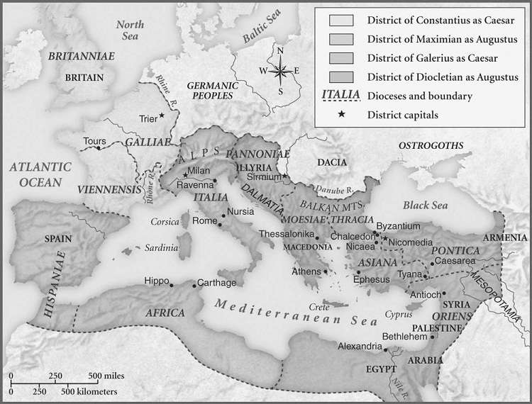 Четырьмя центрами стали Никомедия (главная столица), Сирмий, Медиолан и Августа Треверорум. Современности эти города известны: Никомедия это турецкий Измит, Медиолан – Милан, Августа Треверорум – Трир. Там действительно сохранилась масса античных памятников.