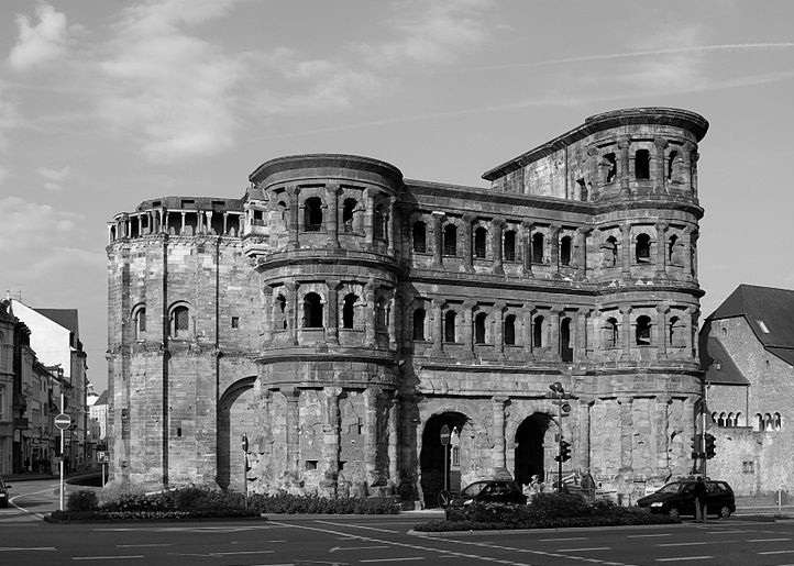 «Порта Нигра» (Чёрные Ворота) в Трире. Отличный пример карго-культа. Это сооружение тридцатиметровой высоты было городскими воротами античного Трира. Сделаны ворота по сложной технике, с использованием железных скоб, приваренных расплавленным оловом. В дальнейшем дикари, будучи не в состоянии разбить стены, сверлили дыры и добывали оттуда железо. Но даже без скоб здание стояло прочно. Наконец ворота преобразовали в «величественный христианский собор», закрытый революционными французами в конце 18 века (тоже из вполне варварских соображений). В начале 19 века Наполеон распорядился сколоть со стен уродливые карго-наросты. Слева карго-пристройку оставили.