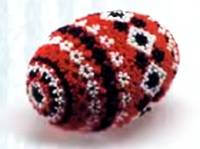 Хотите попробовать? Занятие может показаться трудным лишь на первых порах. Но сначала надо приобрести на рынке необработанные деревянные заготовки в форме яйца. Можно воспользоваться и обыкновенным куриным. Но в этом случае придется сделать острой иглой с двух сторон по дырочке. Через одну — удалите содержимое, а взамен наполните скорлупу для прочности расплавленным стеарином или воском. Теперь вам понадобится полный комплект разноцветного бисера. Оплетать яйцо начните с «пояска». Для него сплетите сетку любым узором. Ширина ее зависит от величины заготовки и составляет приблизительно третью часть высоты.