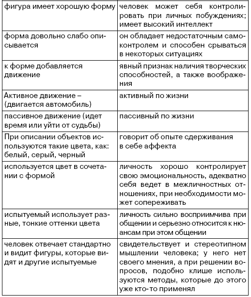 Общие сведения о человеке по тесту Роршаха