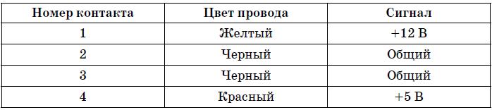 Нумерация контактов вилки ATX12V представлена на рис. 14.8 и в табл. 14.3.