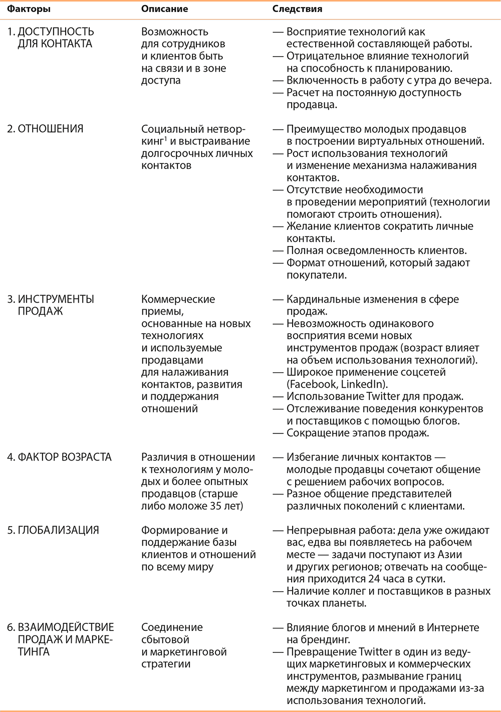 Источник: Greg W. Marshall, William C. Moncrief, John M. Rudd, Nick Lee, Revolution in Sales: The Impact of Social Media and Related Technology on the Selling Environment, Journal of Personal Selling & Sales Management 32 (лето, 2012). С. 351–365.