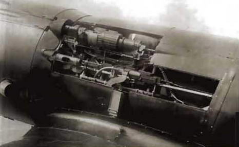 Установка крупнокалиберного пулемета ШВАК (сверху) и пулемета ШКАС на левом борту истребителя И-28