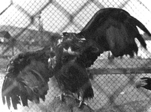 Рис. 1.33. Огромные орлы, жившие в большой и высокой клетке в городском парке города Магадана. Фотография примерно 1956 года.