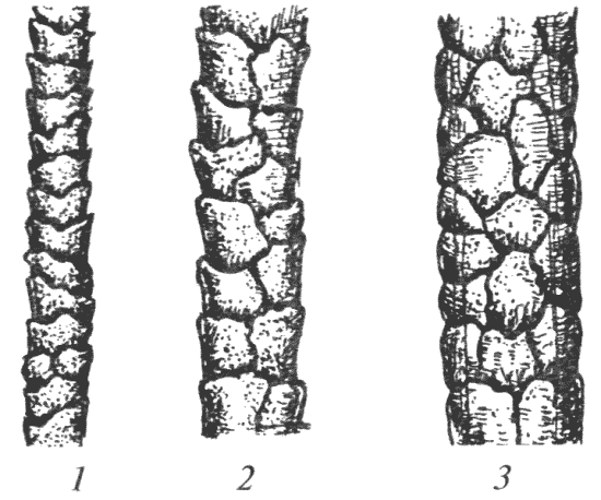 1 — кутикула, 2 — корковый слой, 3 — сердцевина