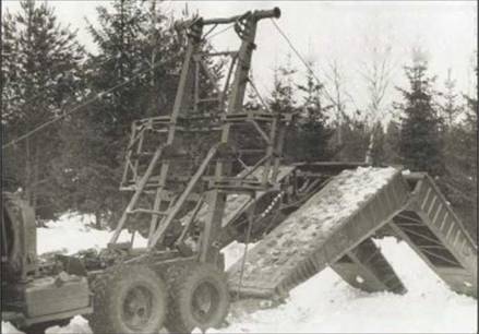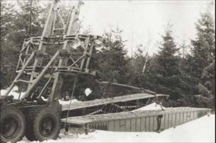 Мостоукладчик К-95 с деревянным пролетным строением.