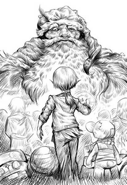 Поскольку добровольцев не нашлось, двое стражей, до этого стоявших неподвижно, выхватили из толпы мальчика лет двенадцати и толкнули его к деду Морозу. На этот раз прикосновение волшебного посоха ничего не дало. Дед Мороз покачал головой: