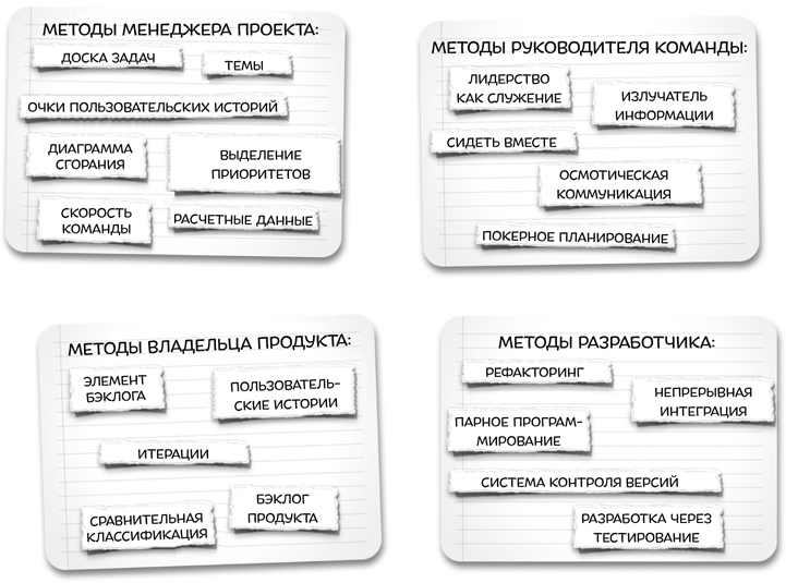 Вот почему команды, которые внедряют отдельные элементы Agile, часто становятся успешнее, чем были до этого. Они применили лучшие методы к тому, что уже умеют делать на отлично, поэтому и добились заметного прогресса. Но они еще не затронули некоторые области проекта, поскольку методы, влияющие на них, пока не привлекли внимания кого-либо из разработчиков, поэтому часть проблем, влияющих на эти области, не была устранена. А ведь именно эти области зачастую мешают команде быть гиперпродуктивной и достигать высоких результатов.