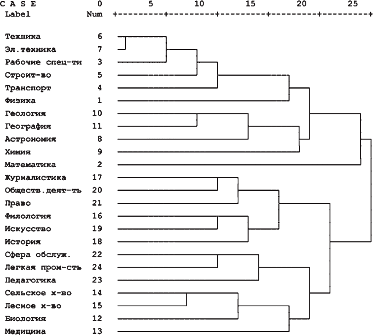 Рис. 2. Дерево иерархической кластеризации познавательных интересов подростков