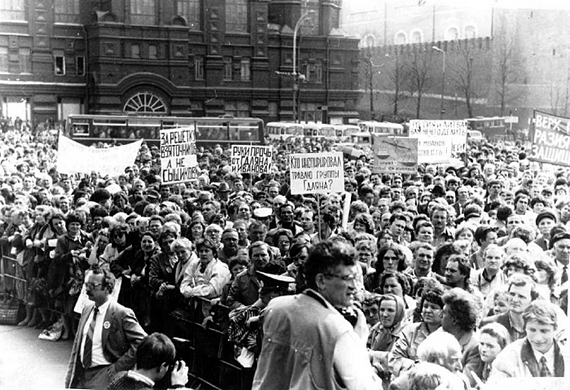 Одним из средств давления на консервативных «бандерлогов» той эпохи (их еще называли агрессивно-послушным большинством) стала улица. За стенами Кремля шло голосование, а у стен Кремля ревела толпа: «Не отмените 6-ю статью — расстреляем». Это называется психологическим давлением. Давление, понятное дело, зависит от числа митингующих.
