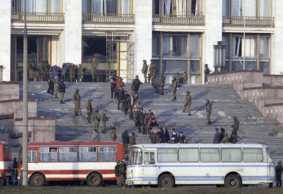 Уже после того как почти безоружных манифестантов загнали в останкинскую ловушку и расстреляли из пулеметов, и аккурат перед тем, как этих же несчастных стали добивать кумулятивными танковыми снарядами, Геннадий Зюганов выступил по телевидению, призвав своих сторонников лечь на дно, отказаться от той борьбы, на которую он их активно поднимал до того, будучи одним из сопредседателей Фронта национального спасения.