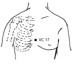 Таньчжун. Центральная точка переднесрединного меридиана, расположена на срединной линии грудины, на уровне четвертого межреберья. (VC 17.)