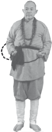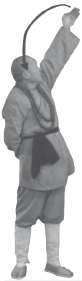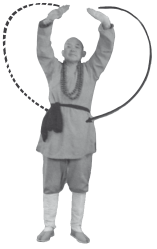 На выдохе ладони через стороны опускаются вниз. На вдохе ладони сжимаются в кулаки и подносятся к пояснице. Центры кулаков развернуты вверх. Взгляд – вперед.