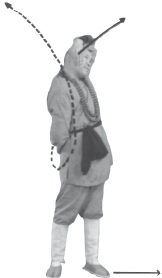 Из этого положения положите предплечье левой руки на голову и прижмите левую ладонь к правой части лица. На выдохе голова поворачивается влево, растягивая мышцы шеи, при этом левая ладонь делает давящее движение на правую часть лица. Одновременно корпус разворачивается влево, правая ладонь, прижимаясь к позвоночнику, поднимается вверх и останавливается между лопатками. Ладонь центром развернута вниз. Взгляд – вверх. В этом положении следует находиться 30 секунд.