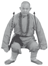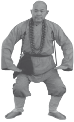 Делаем очень медленный выдох через рот, округлив губы (дыхание типа «ту»), одновременно ладони разворачиваются центрами вниз и медленно делают давящее движение вниз и немного в стороны, скользя вдоль внешних поверхностей бедер. Ноги сгибаются в коленях, образуя высокую стойку мабу. Грудь естественно расправлена, спина выпрямлена, однако при этом стремитесь не напрягать корпус. Движение ладоней остановить на уровне коленей. Кончик языка поднимается к верхнему небу. Глаза широко, но без напряжения, открыты, взгляд – вперед. Концентрируемся на точке соприкосновения языка и неба. В этом положении находимся одну минуту. Дыхание естественное.