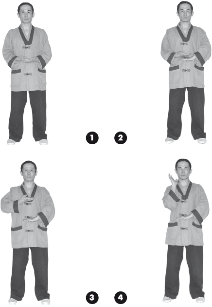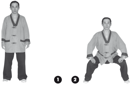 Ноги на ширине плеч, стопы параллельны, колени слегка согнуты. Плечи опущены, грудь и мышцы спины расслаблены, низ живота подтянут. Руки слегка согнуты в локтевых суставах и расположены вдоль бедер. Голову держите прямо, взгляд направлен вперед.