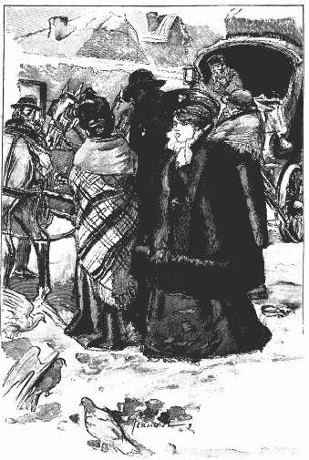 Наутро снег так и сверкал на ярком зимнем солнце. Дилижанс, наконец запряженный, ожидал у подъезда. Целая стая белых голубей с черными, в розовом ободке, глазами, раздувая пышное оперение, важно прохаживалась под ногами шести лошадей и рылась в дымящемся навозе, отыскивая себе корм.