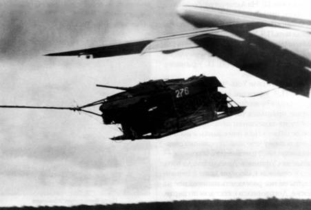Сброс с минимальных высот отрабатывался и в других странах. Так, в США были разработаны: система десантирования с малых высот LAPES (Low Altitude Parachute Extraction System) для сбрасывания на специальных платформах с самолетов С-130 материально-технических средств и некоторых видов техники (масса груза – 1130-15860 кг) на скорости 210 км/ч с высот до 1,5-3 м; система с тормозным крюком GPES (Ground Proximity Extraction System), отличающаяся заменой парашютов тормозным крюком, крепящимся к сбрасываемому грузу (массой до 15360 кг) и зацепляющимся за трос на земле, подобно системе аэрофинишера.