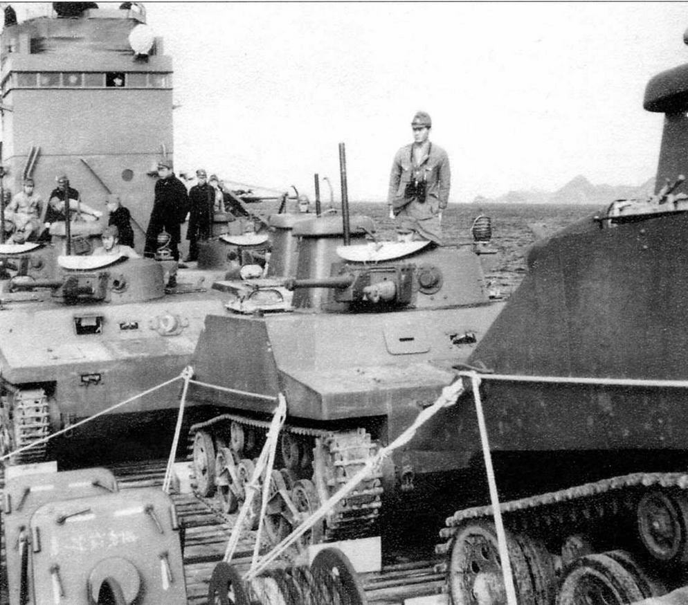 Танки «Ка-ми» на палубе японского десантного корабля. Март 1944 года