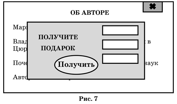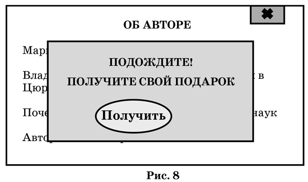 Всплывающее окно может предлагать человеку получить подарок или скачать что-нибудь бесплатное, то есть окно должно содержать какой-нибудь ваш «магнит» и форму подписки (рис. 7).