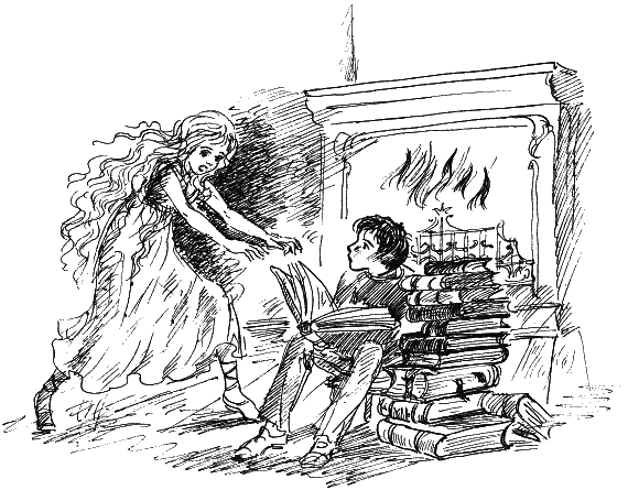 Но девочка даже не повернула головы, она кидала в огонь одну книгу за другой.