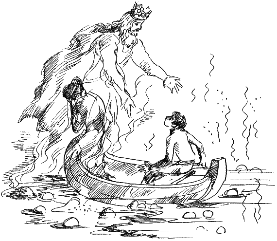 Вдруг кто-то прозрачный, туманный встал на корме. Алёшка обожжённой рукой смахнул кипящие слёзы и увидел Седого Короля.