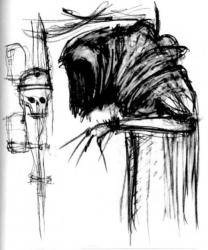 Астартес был мертв, но однозначно ослаблен перед умерщвлением, возможно, он провисел прикованным к стене несколько месяцев, пока его мышцы атрофировались. Грудная клетка космодесантника была вскрыта, а все органы вынуты. Дениятос разглядел татуировку птичьей головы на плече мертвеца. Гвардия Ворона, один из легендарнейших орденов космодесанта. У них были свои счеты с Асценианом. Как и сам Дениятос, этот Астартес был оглушен и пойман.