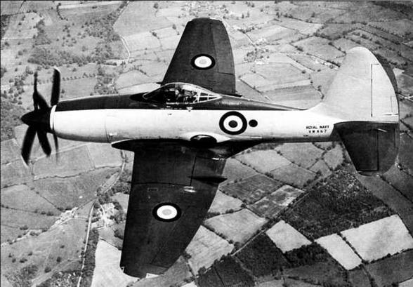 В воздухе первый предсерийный "Уайверн" TF.2 под управлением шеф-пилота фирмы "Уэстленд" Ш.Дж.Пенроза, июнь 1950 г.