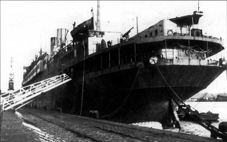 Лайнер «Де Грасс» у причала в Бордо в качестве плавучей базы командования BETASOM