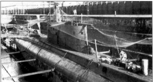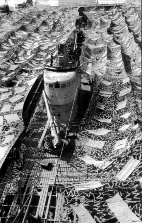 Замаскированная подводная лодка типа «Кальви» ремонтируется в сухом доке базы в Бордо