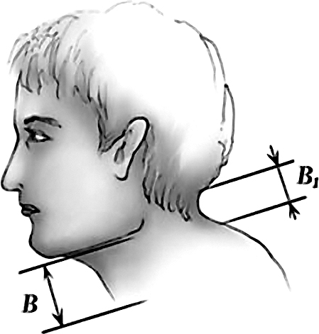 Рис. 2. Гиперлордоз шейного отдела позвоночника: B > B1