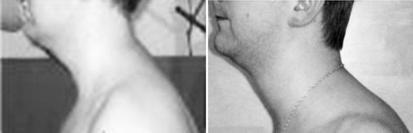 Рис. 9. Спазмированные трапециевидные мышцы (слева) и расслабленные трапециевидные мышцы (справа)