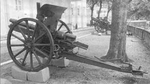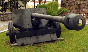 Первый экспонат — 80-мм пушка Krupp С.28 Modell 1913, произведенная в Германии в 1913 г. по заказу Бразилии. Немцы успешно выполнили заказ, который попал на вооружение страны-противника Германии в Первой мировой войне. Впрочем, 80-мм пушки урона кайзеровской армии не нанесли, оставшись за океаном. Рядом — еще одно крупповское детище — 75-мм полевая пушка образца 1908 г. Табличка рядом с орудием искрение предупреждает, что происхождение экспоната остается загадкой. Бразильские архивы не оставили упоминания о том, как немецкая скорострельная пушка вообще попала в страну. Кстати, подобные ссылки на неизвестное происхождение, будут встречаться и далее.
