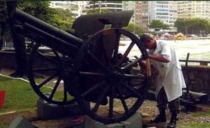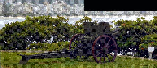 Покинув батарею, можно заглянуть в небольшой исторический музейчик (из двух залов), где категорически запрещено снимать. Экспозиция посвящена основанию крепости Копакабана от «договора» с индейцами до строительства первого форта. Кроме запрета на фотосъемку неприятной неожиданностью оказывается отсутствие всякого перевода на более распространенный в мире английский. Что ж — это дело армии, которой и принадлежит музей. Кстати, армия тщательно заботится о сохранности коллекции. На глазах посетителей сержант старательно реставрировал деревянный обод крупповской пушки.