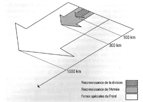 Глубина использования войск специального назначения фронта могла, таким образом, варьироваться от 600 до 1 000 км в зависимости от задачи фронта, носившей обычно стратегический характер.