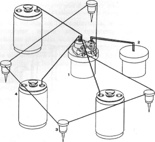 Пример сети мин с сейсмической детонацией УМК. Такие сети устанавливались советским спецназом в тылу афганских повстанцев.