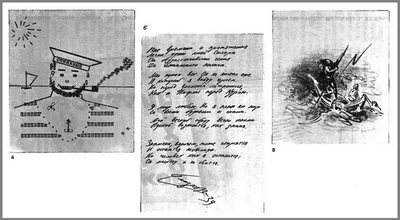 а) Моряк. Рисунок на машинке работы В. Катаняна