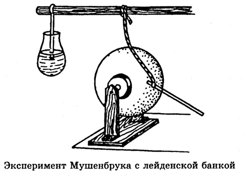 Эффект получился обратный ожидаемому: вода накопила в себе электрический заряд и разрядилась в Мушенбрука, который держал лейденскую банку своей правой руке. «Моя правая рука, — признавался физик в письме Реомюру, — была поражена ударом такой силы, что все тело содрогнулось, как от удара молнии». Сходство действия лейденской банки с грозой и ярчайшие искры, которые получали последующие экспериментаторы из первого конденсатора, убедили Франклина в принадлежности молнии к электрическим явлениям.