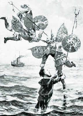 Конечно, только к эдисониадам дело не сводилось. Например, британско-американский фантаст Уильям Ричард Брэдшоу (1851–1927) в своём романе «Богиня Аватабара» даёт описание совершенно невероятного мира, одновременно напоминающего что-то среднее между перенесённым в викторианскую эпоху путешествием Гулливера, марсианскими опусами Берроуза — и… «Плутонией» Обручева (все приключения происходят не на иной планете, а внутри полой Земли, куда попадает экспедиция на пути к Северному полюсу). При этом он чрезмерным изобретательством не увлекается, но как «деталь фона» в Аватабаре присутствуют страусообразные шагоходы и крылатые экзоскелеты-махолёты: не орнитоптеры, но с «крыльями мотыльков». Движет их не пар и не электричество, а некая высокоэнергетическая абстракция, напоминающая скорее холодный термояд, — конечно, не в современном понимании, а так, как это виделось в последние годы XIX в.