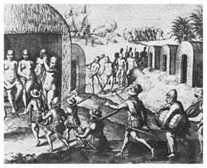 Мы продвигались вперед, плывя вдоль берега, на котором нам случалось много раз сражаться с туземцами, так как они не разрешали нам брать что-нибудь с острова. Нашим желанием было теперь вернуться в Кастилию, ибо мы уже около года находились в море и имели очень малый запас продовольствия. К тому же этот небольшой запас был испорчен большой жарой, которую мы переносили, так как с того времени, как мы отправились на острова Зеленого Мыса, и до настоящего времени мы постоянно находились в жарком поясе и дважды пересекали равноденственную линию. Как я уже говорил раньше, мы опускались до пятого градуса ниже ее к югу, а также находились на пятнадцатом градусе севернее ее.