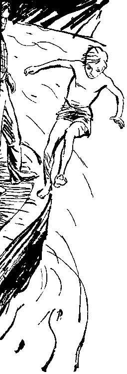 А потом навстречу ему бросились узкие каменные ворота. Берега исчезли. Небо, смешавшись с пеной, хлестнуло его по лицу. Раз… Еще раз!.. Совсем близко Юрка увидел гладкий бок камня. Камень прыгнул назад и скрылся. В памяти Юрки остался неподвижный завиток волны, стоявший у гладкого лба камня.