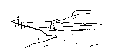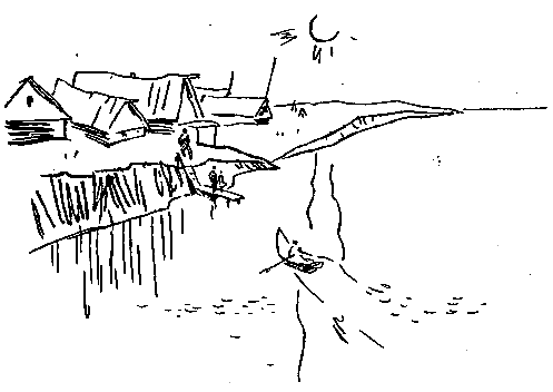 У подножия синих гор, обступивших залив, стояли дома рыболовецкого совхоза. Через час Венька пристал к берегу. Захватив обернутый клеенкой пакет с письмами, он выпрыгнул из лодки.