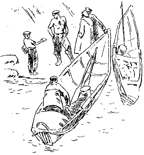 Прошло полчаса. Никто не приходил. Выйдя на крыльцо, Венька увидел кучку людей, собравшихся у лодок. Они готовились к выходу в море. Где-то среди них промелькнула белая мичманка Шаврова.