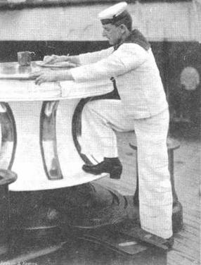 Кроме того, имелось в виду испытать влияние стрельбы на сильный электрический фонарь-искатель установленный на палубе верхней надстройки. Но, как только фонарь замкнули в цепь батареи, наружное стекло фонаря треснуло, от сильного жара, и угольки, будучи не защищены переломились при четвертом выстреле.