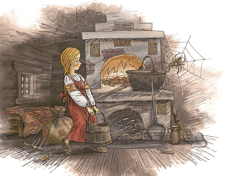 – Девчонка, девчонка! – кричит Сова. – Садись в горшок, накройся крышкой и полезай в печь!