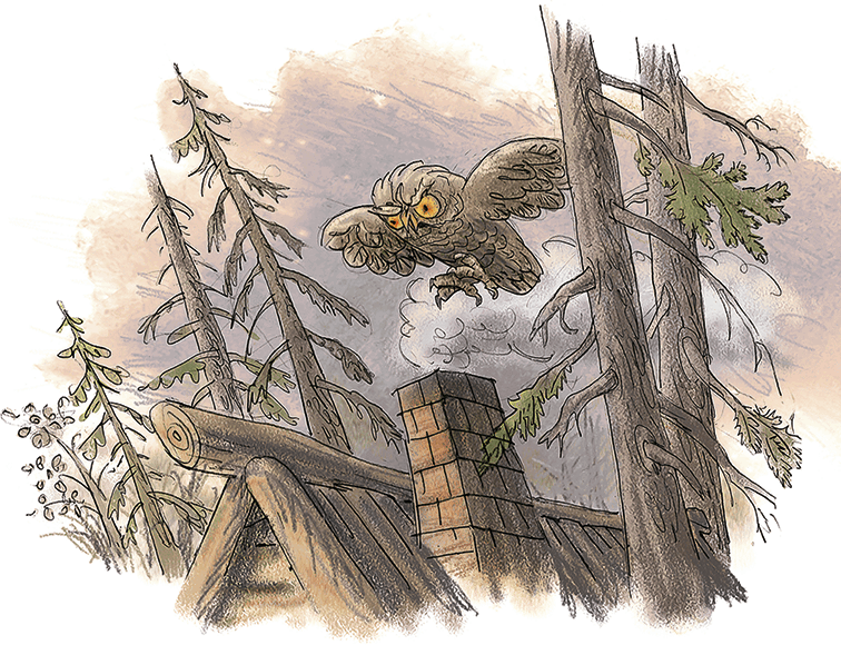 Засмеялась Сова, заохала, а Баба-Яга ей из окошка кричит: