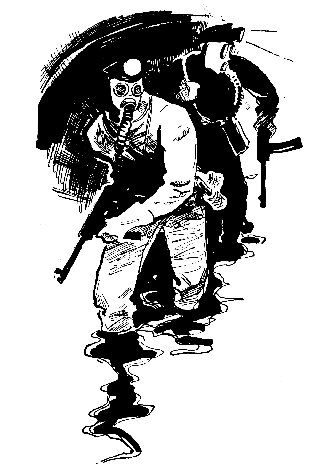 Пожелав друг другу удачи, истребители натянули противогазы и тронулись в нелегкий путь, согнувшись едва не под прямым углом.