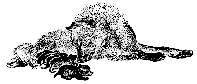 В тот день, когда Пират впервые открыл глаза, волк явился к волчице не один. Он держал в зубах крупного зайца. Волчица подняла голову и насторожилась. Волк долго стоял на своем обычном месте, не выпуская добычи, затем шагнул вперед. Волчица молча подняла губу и оскалила зубы. Но взгляд ее уже казался не таким настороженным, и от этого оскал более походил на улыбку, чем на угрозу.