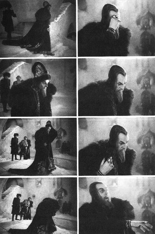 В отличие от живописного полотна, в фильме бросок царского посоха — не припадок жестокости дошедшего до безумия неврастеника, но… гневный выпад Люцифера, восставшего против Бога.